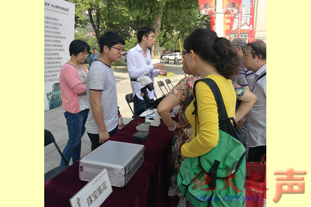 (地大之声通讯员张凡)5月18日是第41个国际博物馆日,17日上午,我校逸夫博物馆参加“让文物活起来”社会博物馆精品展。 在展览现场,我校逸夫博物馆和武汉市其他27家社会博物馆一起,共携数百件馆藏精品亮相。逸夫博物馆为市民普及地学知识,并接受免费咨询和鉴宝,受到市民欢迎。 据悉,每年“国际博物馆日”,武汉市文化局均联合各博物馆开展富有特色的市民文化活动。今年,本着“让文物活起来”的宗旨,武汉市开展了江滩文物展览,文博沙龙讲座,博物馆进社区、进校园等系列文博活动。