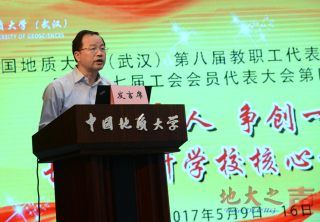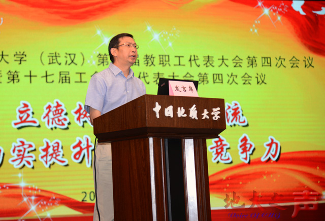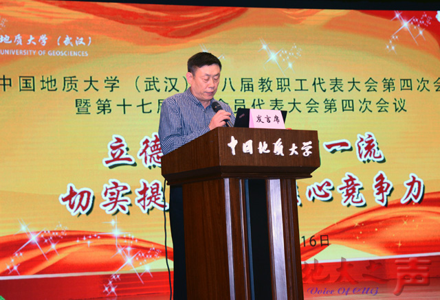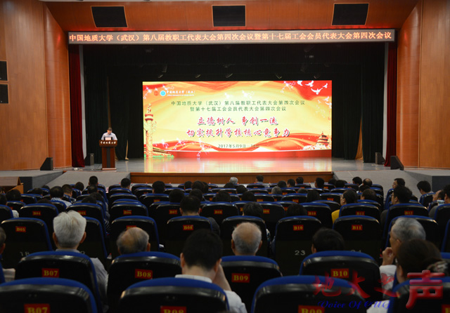 (地大之声记者徐燕 摄影张玉贤)5月16日下午,我校第八届教职工代表大会第四次会议暨第十七届工会会员代表大会第四次会议在弘毅堂闭幕。全校300余名教职工代表参加会议。