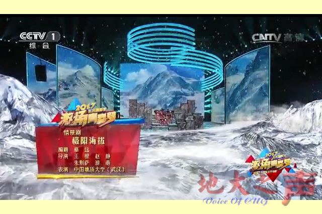 (地大之声记者庞伟红 通讯员朱荆萨)5月4日晚8点,根据我校登山队真实故事改编创作、并由我校大学生参与演出的原创情景剧《极限海拔》,在中央电视台综合频道2017年“五月的鲜花”全国大中学生文艺汇演中播出。