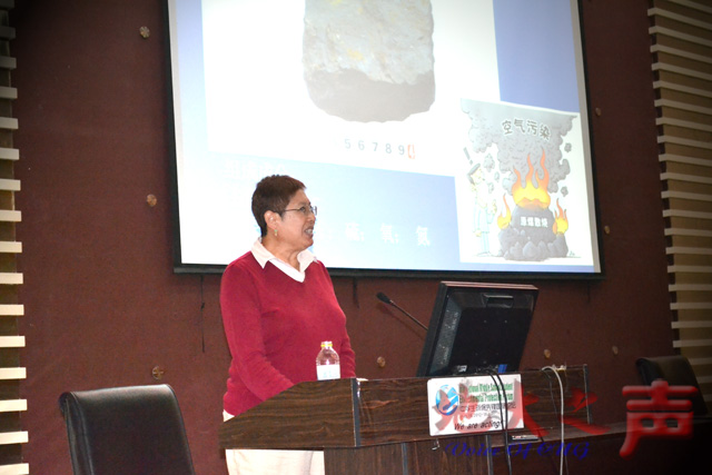 邹宗平女士1976年毕业于北京大学地质地理系,1980年毕业于纽约州立大学地质系,现任国土资源部李四光纪念馆高级顾问、馆长特别助理。邹宗平以“李四光战略科学家的大视野——减少煤炭燃烧,开发清洁能源”为题,围绕李四光先生如何从战略高度思考地质学科发展远景、保护人类生存环境和充分利用自然资源、促进可持续发展等一系列重大问题展开,再现了李四光为祖国忘我工作的真实故事。报告中,听众感受到了李四光为保护人类生存环境、充分利用自然资源,促进社会健康持续发展的先见之明,激励着大家推动我国低碳经济循环发展和可再生能源开发利用的信心和责任。