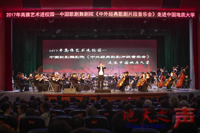 (地大之声学生记者程琳珊 刘潇予 摄影鲁玉梅)4月18日晚,“高雅艺术进校园”——中外经典歌剧片段音乐会在我校弘毅堂举行,中国歌剧舞剧院交响乐团的艺术家们为我校师生带来了一场精彩的视听盛宴。