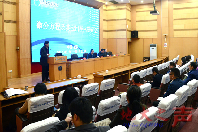 (地大之声通讯员黄刚 学生记者赵颖杰 程琳珊 摄影张玉贤)3月24日至26日,由我校数学与物理学院主办的“微分方程及其应用学术研讨会”在迎宾楼报告厅举行。来自武汉大学等国内外50多个科研院所的90余名专家学者和研究生参加了研讨会。