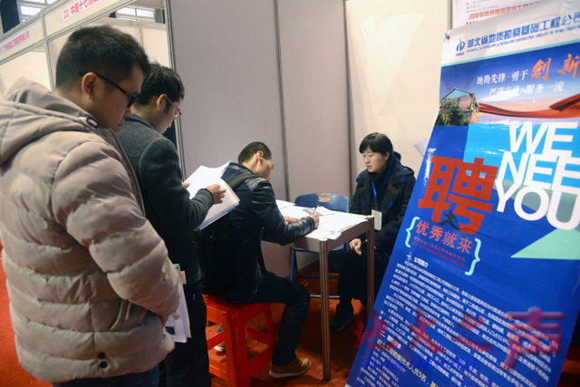本次双选会为我校历年春招中最大规模的一次,聚集了来自大型央企、上市公司、知名企业、政府机构和国内重点高校等单位,职位涉及地矿勘察、工程建设、装备制造、信息科技、营销管理、教育培训等,招聘单位来自于湖北、浙江、江苏、北京、广东等地区。