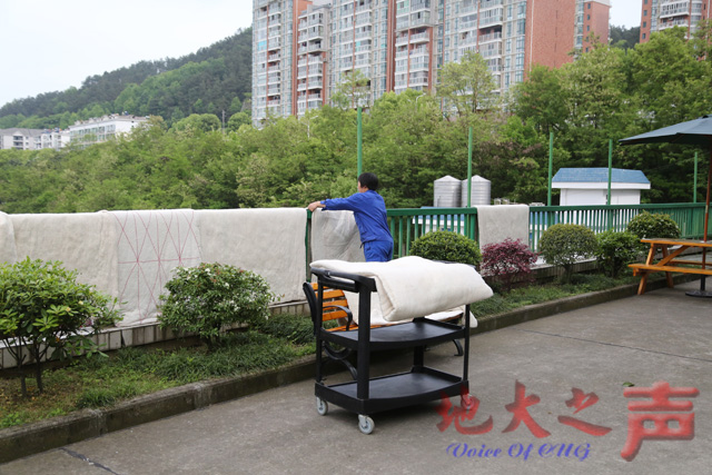 工作人员晾晒被褥 图片由基地提供