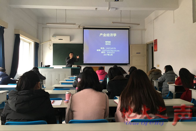 16点20分,研究生楼A606教室,经管学院朱冬元老师给硕士研究生讲授《产业经济学》。