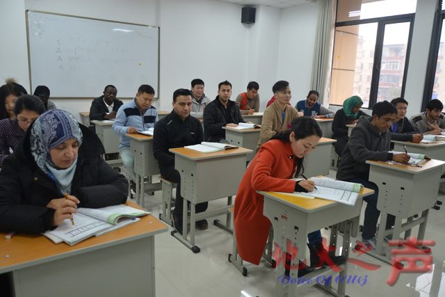 10点40分,丹桂苑229教室,留学生们听老师讲授汉语初级读写课。