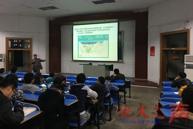 9点20分,教一楼一阶,资源学院吕新彪老师给研究生讲授《高级矿床学》。
