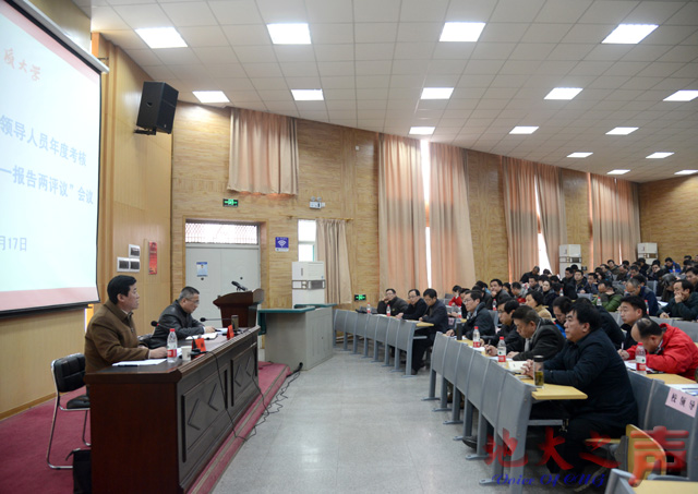 (记者庞伟红 摄影张玉贤)2月17日下午,校领导班子和领导人员2016年度考核及干部选拔任用“一报告两评议”大会在教三楼召开。学校领导班子成员、党委委员、纪委委员、中层干部、民主党派负责人、离退休老同志代表、教师代表、学生代表等200余人参加了大会。会议由校党委书记郝翔主持。