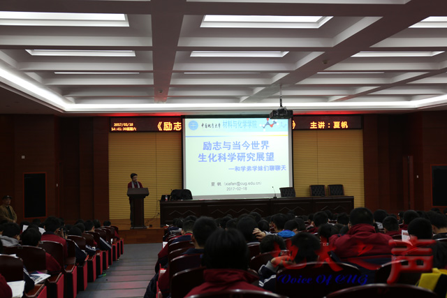 夏帆以《励志与当今世界生化科学研究展望》为主题,从初中高中的学习经历、科研和留学的心路历程、生化科学研究展望三个方面展开,以聊天的形式给在场的300余名师生作了一场别开生面的报告。他还从学校概况、特色培养、招生类别、校园生活等多个方面向在场师生介绍了学校的基本情况和招生概况,鼓励优秀学子积极报考我校。