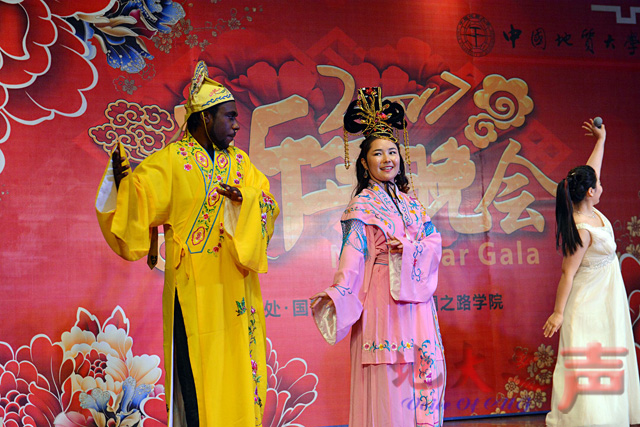 晚会汇聚歌舞、魔术、汉语知识竞答、互动游戏、幸运抽奖等多种形式,在蒙古学生表演的开场舞《我从草原来》中拉开帷幕,动感的旋律、晃动的肩膀,将草原儿女的豪情、东方文化的古韵表现的得淋漓尽致。来自喀麦隆的袁梅梅堪称地大校园的“碧昂斯”,拥有精湛的唱功、震撼的声音,一首 《how far I’ll go》瞬间将晚会带入高潮。来自东帝汶的欧阳鸿飞和中国学生组成乐队,用尤特里里、吉他、非洲鼓等乐器演绎《勘探队员之歌》等脍炙人口的经典曲目,体现了中外学生之间的融合,以及对学校的深厚情谊。来自斐济、瓦努阿图、巴勒斯坦、尼日利亚的国际学生和中国学生联手表演《黄梅飘香》让人耳目一新。汉语生用中文深情演绎诗朗诵《我有一个梦想》,抒发留学生眼中的中国梦。