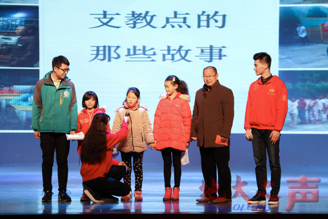 作为研究生支教团的一员,研一的霍少孟也来到现场讲述了他们的故事。讲到自己离开前,孩子们为他合唱《隐形的翅膀》时,他的声音开始哽咽,看到与他一起来到现场的孩子们脸上洋溢着幸福的笑脸时,台下的师生们也忍不住热泪盈眶。“等离开以后,我一定会回去看他们的,一定会!” 霍少孟感慨地说,“那里是我的第二个家。”
