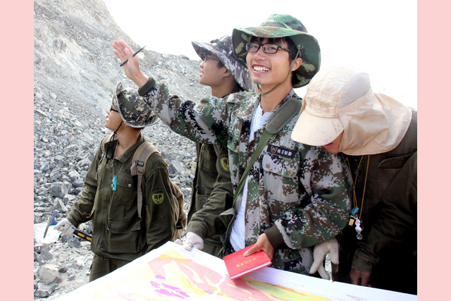 今年刚刚退休的曹新志教授,是地质找矿的行家里手,每年暑期雷打不动地奔波于全国各地的各类矿山。他与学生登山赶往一处矿点时,脚步轻盈,丝毫也看不出他已年满六旬。他在找矿中认真、严谨,对于矿床的判断眼光极为准和狠,无论是在专业知识,还是个人魅力方面,均给学生们树立了师者风范。