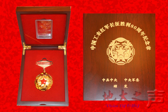 (记者徐燕 摄影张玉贤)在红军长征胜利80周年之际,为体现党中央对革命历史和革命先辈的崇敬,体现对红军老战士、老同志的关心爱护,中共中央、中央军委特地向1937年7月6日之前参加革命工作的健在的红军老战士和老同志颁发“中国工农红军长征胜利80周年纪念章”,我校百岁老人田苏获此殊荣。