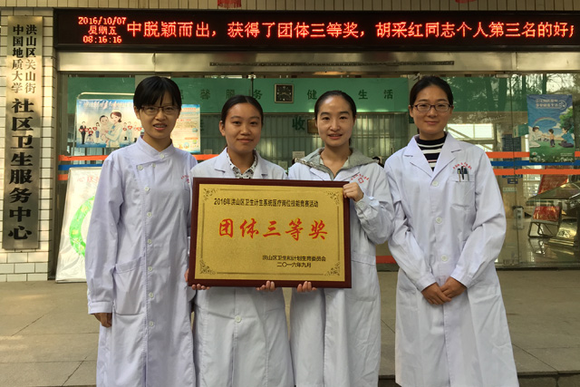 (通讯员徐祝心)近日,在洪山区卫生计生委举办的全区卫生计生系统医疗岗位技能竞赛活动中,校医院代表队荣获团体三等奖,胡采红荣获理论考试第三名。