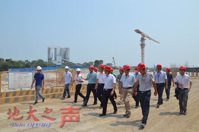 校领导等一行分别来到正在施工的新校区学生宿舍一、三组团,核心科教区(公共教学楼、国家重点实验室大楼)和校前科教区(教学服务中心、计算机学院楼)项目现场,认真听取了各项目施工进度汇报,实地了解了工程质量管控成效,对指挥部与各参建单位为新校区建设工作付出的辛苦和努力给予了充分肯定,对大家在战暴雨、抗高温、抓质量、保进度过程中表现出的吃苦、奉献精神表示赞扬,向全体参建单位和工作人员表示由衷的感谢和诚挚的慰问。校领导一行还参观了资环工研院一期工程。