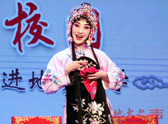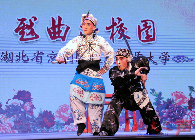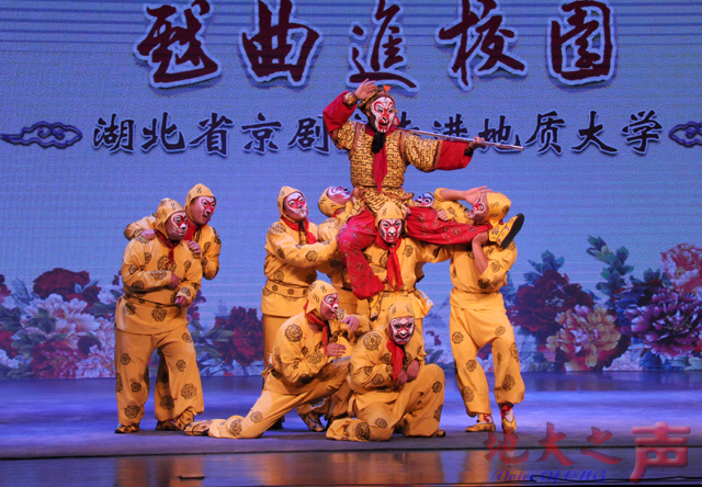 (通讯员唐颖 摄影张子涵)6月24日晚,第16届大学生文化艺术节活动之“高雅艺术进校园”在弘毅堂举行,湖北省京剧艺术团带来了《三岔口》、《拾玉镯》、《大闹天宫》三出经典折子戏,吸引了众多师生前来观看。