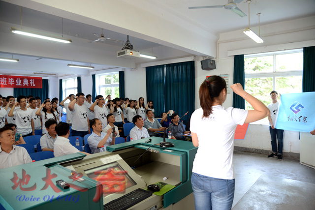 毕业生代表路志通同学发言。他回忆了在母校的点点滴滴,他说:“今天的毕业典礼不是道别,而是勇士出征前的誓师。请母校和学院放心,走出校门我们将始终牢记自己是一名地大人,永远是李四光学院地球科学菁英班的一份子。”