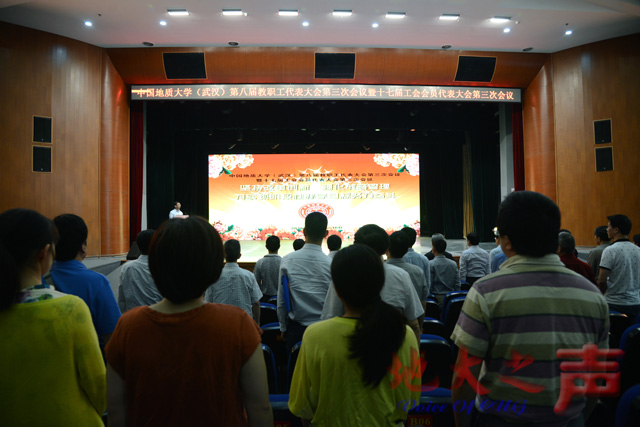 他希望,全校教职员工以此次教代会为契机,以更加饱满的工作热情,更加勤奋的工作态度,更加务实的工作作风,投入到各自工作中,凝心聚力,锐意进取,为确保实现“十三五”学校发展规划的良好开局,为把学校建设成为地球科学领域世界一流大学而努力奋斗。