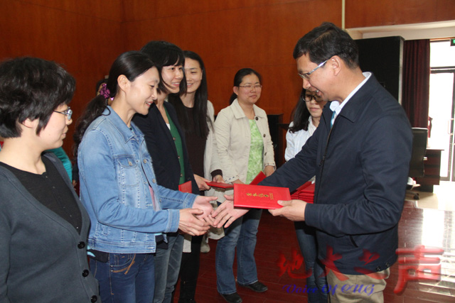 校党委副书记、工会主席成金华为65位获得校“2015年度优秀女教职工”的女教职工颁奖,并表示祝贺。他说:“当男同志出差时,女同志还要上班、在家带孩子,你们是无名英雄,是学校坚实的支柱。”他再三叮嘱广大女教职工:注意身体、做好“贤内助”,为学校发展进一步凝聚力量。