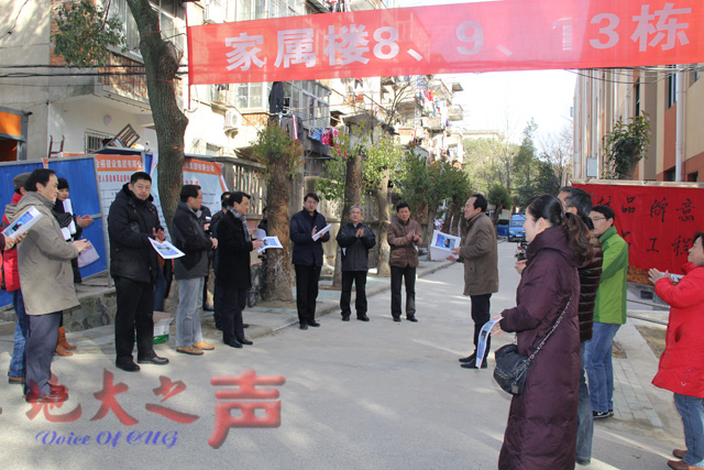 (通讯员周曦)1月24日,由相关职能部门负责人、住户代表组成的工程验收小组,对东区8、9、13栋教师住宅旧房改扩建工程进行了竣工验收。校党委书记郝翔、校长王焰新、校党委副书记朱勤文、副校长万清祥, 武汉市洪山区城市管理委员会主任赵杨、武汉市关山街办事处主任胡海燕参加了验收会。