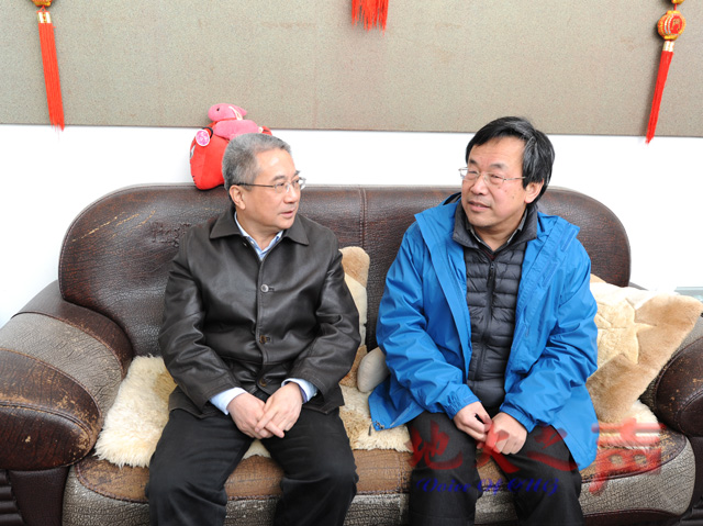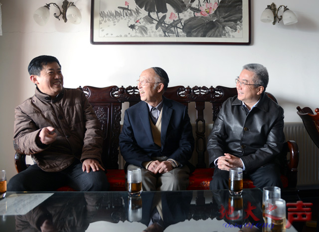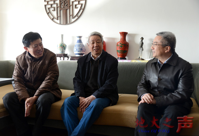 在中科院院士殷鸿福、金振民家中,郝翔、王焰新介绍了我校2015年的发展情况和取得的成绩,感谢他们为学校建设和发展所做出的贡献,并就学科队伍建设、科研工作等方面听取了院士们的意见和建议。