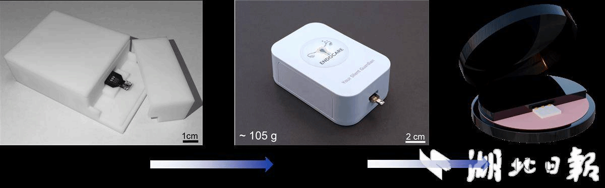 如今,第三代产品已经实现封装,外观形似粉饼盒,精巧精致,意在缓解癌症检测筛查给使用者带来的心理压力。