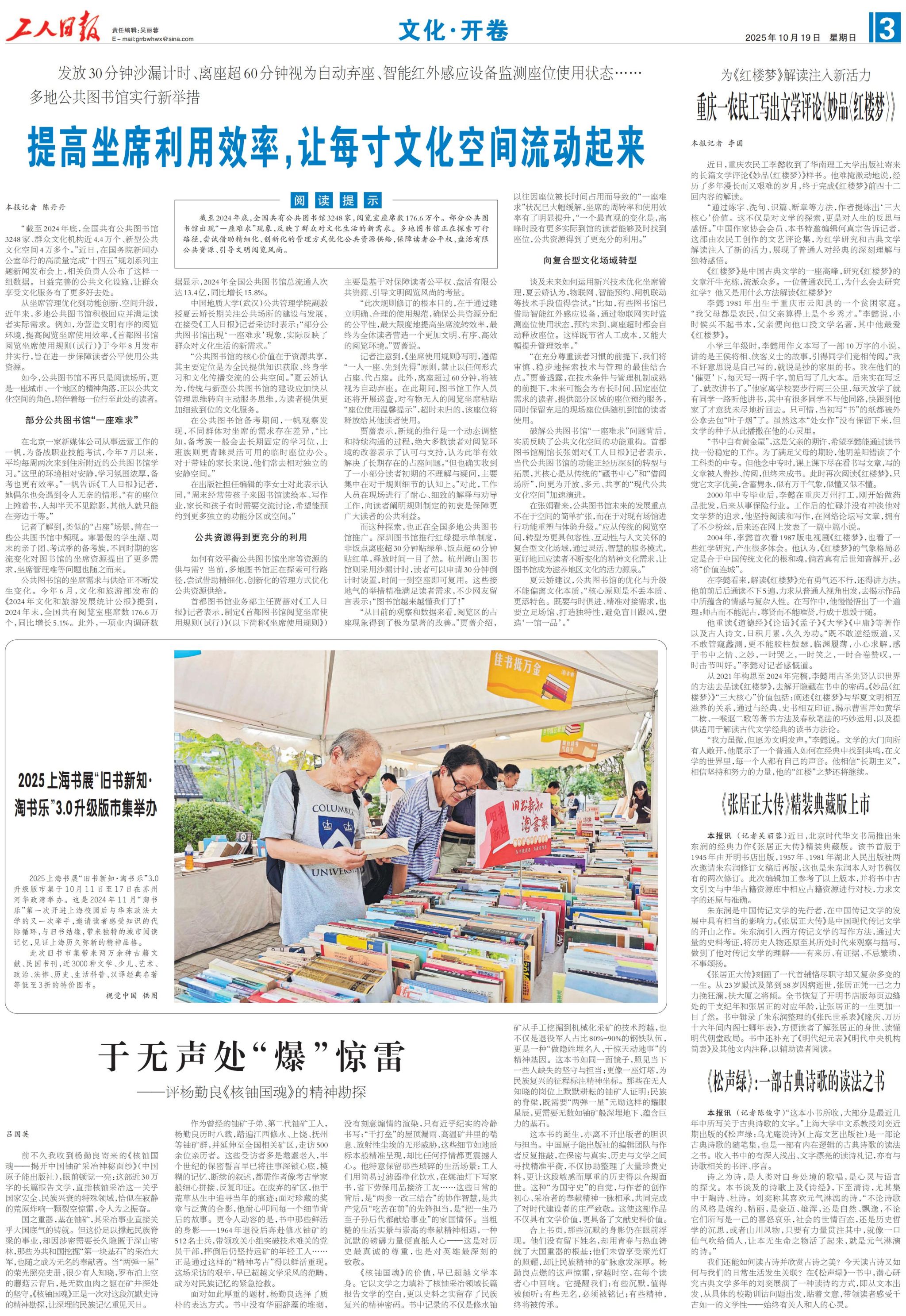 在张娟看来,公共图书馆未来的发展重点不在于空间的简单扩张,而在于对现有场馆进行功能重塑与体验升级。“应从传统的阅览空间,转型为更具包容性、互动性与人文关怀的复合型文化场域,通过灵活、智慧的服务模式,更好地回应读者不断变化的精神文化需求,让图书馆成为滋养地区文化的活力源泉。”